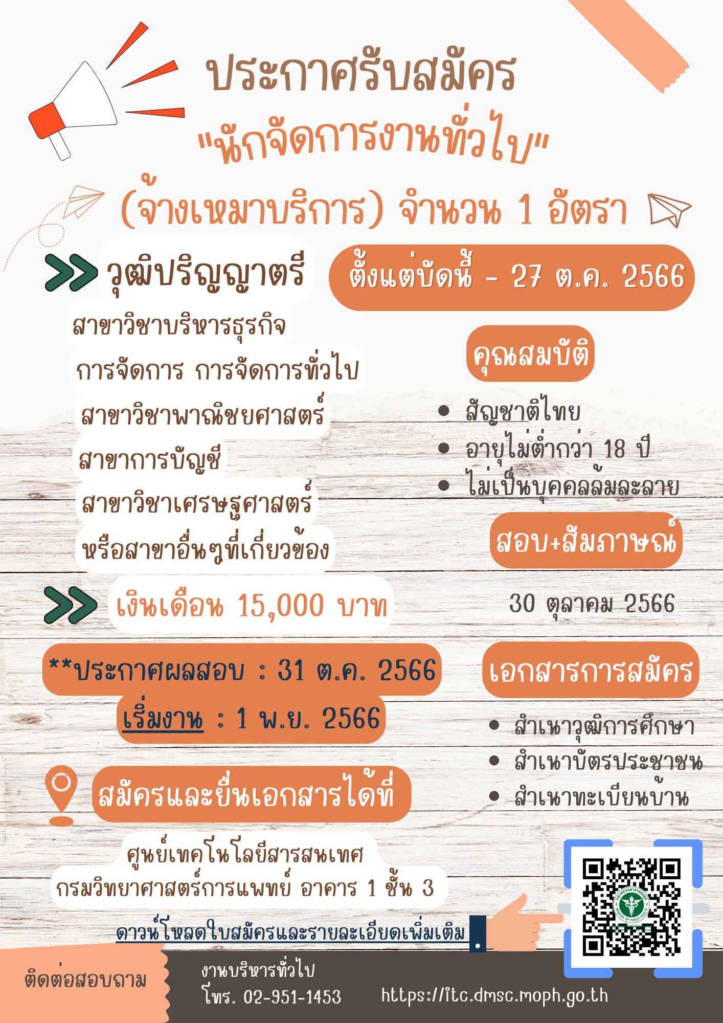 ประกาศรับสมัครตำแหน่ง "นักจัดการงานทั่วไป (จ้างเหมาบริการ)"