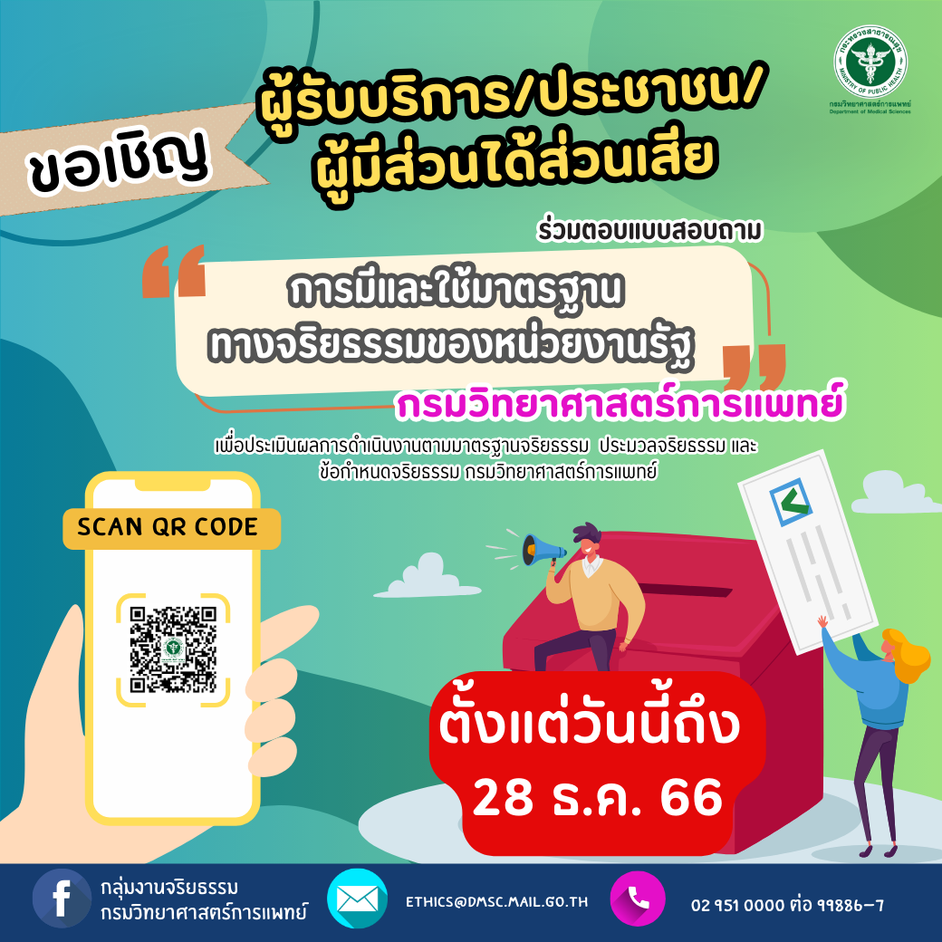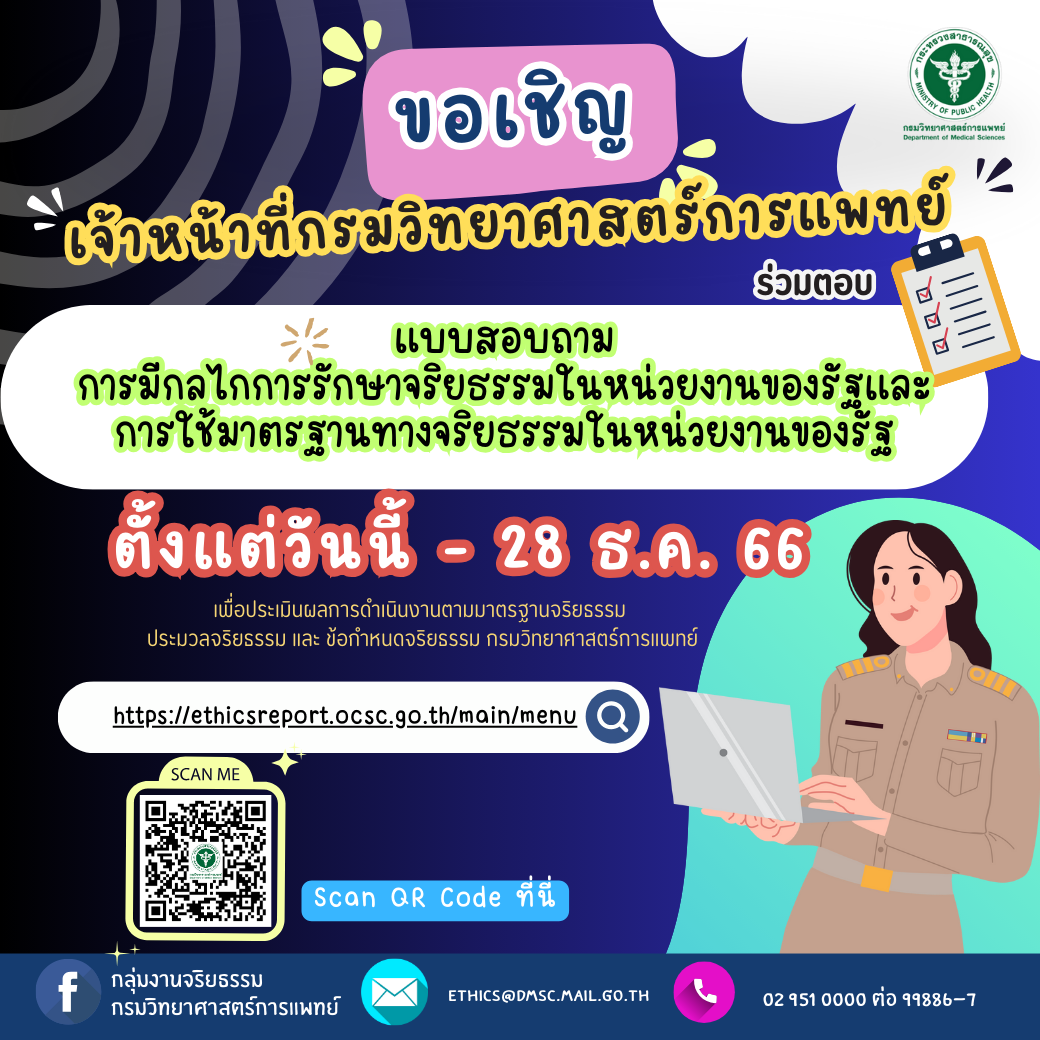 ด้วยสำนักงาน ก.พ. กำหนดหลักเกณฑ์และวิธีการรายงานผลการดำเนินการตามมาตรฐานทางจริยธรรม ประมวลจริยธรรม ข้อกำหนดจริยธรรม และกระบวนการรักษาจริยธรรม โดยให้หน่วยงานดำเนินการตอบแบบสอบถามเกี่ยวกับการดำเนินการตามมาตรฐานทางจริยธรรม ของสำนักงาน ก.พ. ผ่านระบบอิเล็กทรอนิกส์ ได้แก่ แบบการมีกลไกการรักษาจริยธรรม ในหน่วยงานของรัฐแลใช้มาตรฐานทางจริยธรรมในหน่วยงานของรัฐ สำหรับเจ้าหน้าที่ภายในหน่วยงาน และแบบสอบถามการมีและใช้มาตรฐานทางจริยธรรมของหน่วยงานรัฐ สำหรับผู้รับบริการ/ผู้มีส่วนได้ส่วนเสียและประชาชน ผ่านระบบอิเล็กทรอนิกส์ https://ethicsreport.ocsc.go.th/main/openAccess ภายในวันที่ 28 ธันวาคม 2566