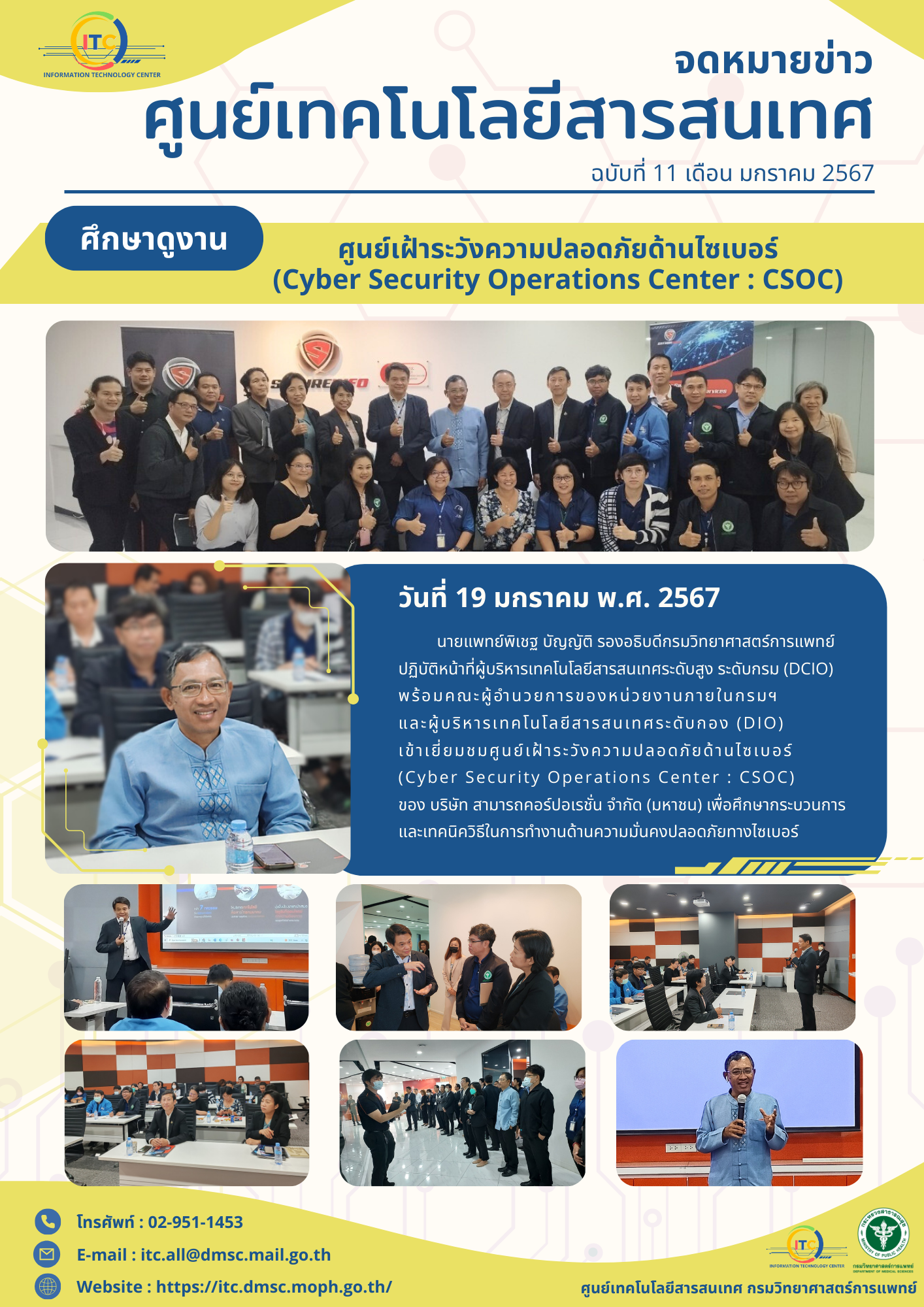ศึกษาดูงานศูนย์เฝ้าระวังความปลอดภัยด้านไซเบอร์ (Cyber Security Operations Center : CSOC)