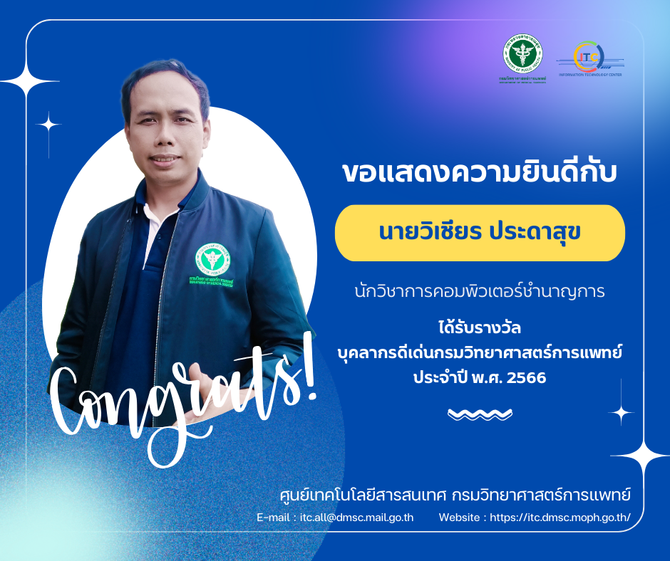 ขอแสดงความยินดีกับบุคลากรดีเด่นกรมวิทยาศาสตร์การแพทย์ ประจำปี พ.ศ. 2566
