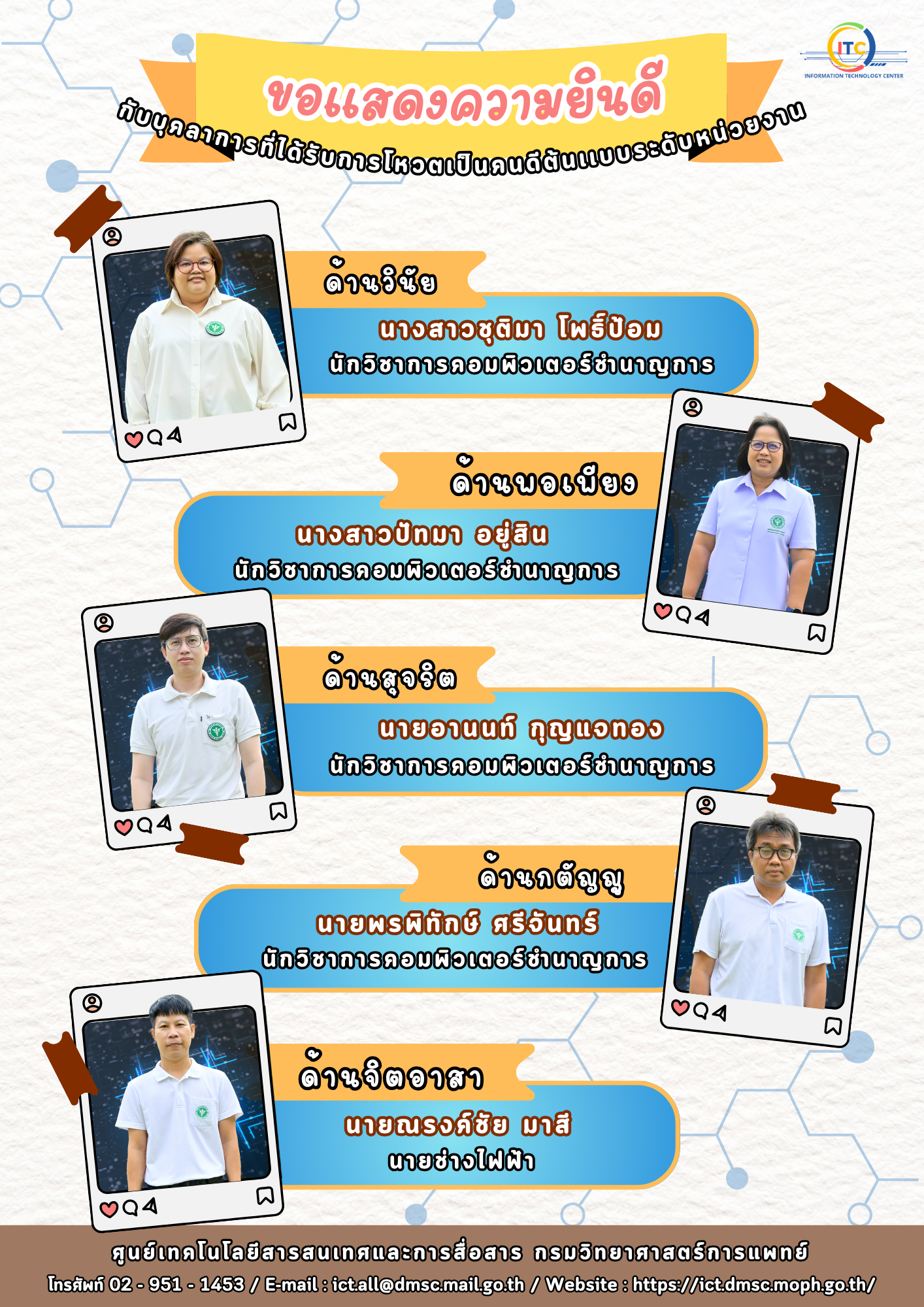 ขอแสดงความยินดีกับบุคลากรที่ได้รับคัดเลือกเป็นคนดีต้นแบบ ศูนย์เทคโนโลยีสารสนเทศและการสื่อสาร ปีงบประมาณ 2568